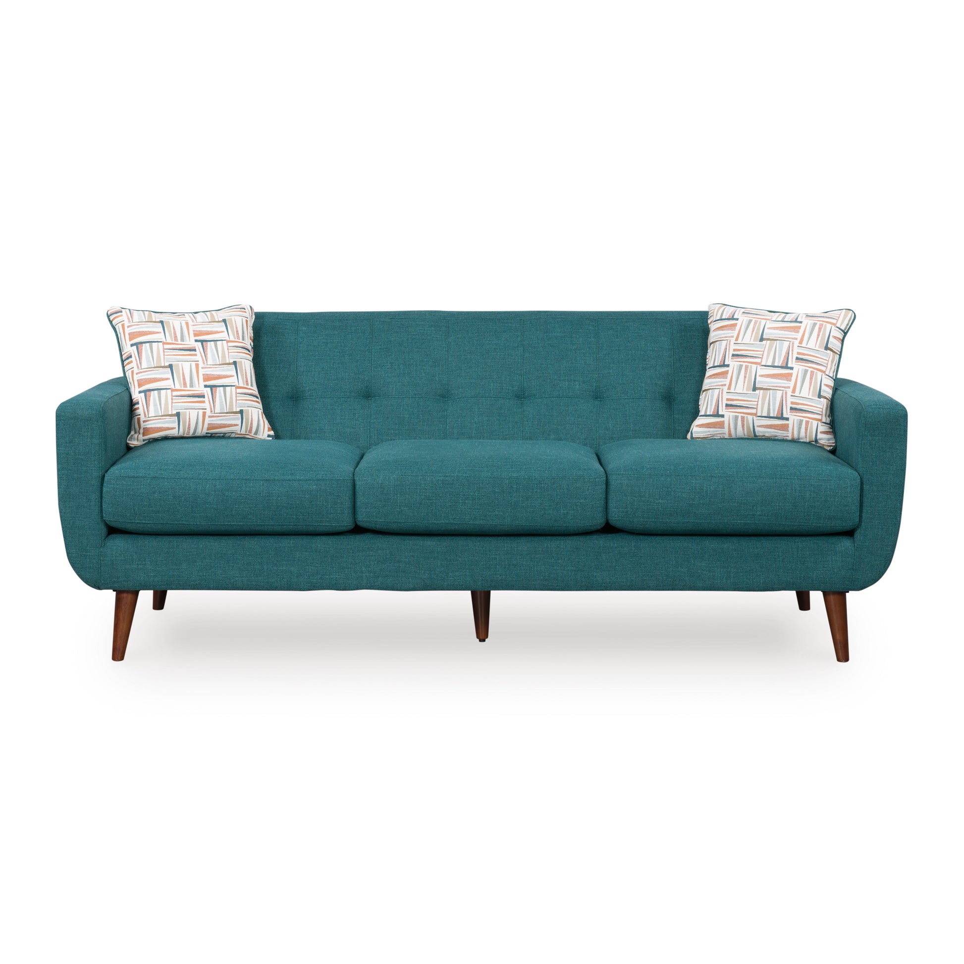 Classic mid-century style meets contemporary flair with this sofa. Flared accent legs lend a retro vibe, while slender track arms bring the look right to the present. In a beautifully brilliant teal hue, it adds a pop of color to neutral spaces. A chic button-tufted back cushion rounds out the charmingly cool design.